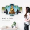 Buddha Set of Five 3D Framed Paintings for Wall Decoration – Ideal for Home, Living Room, and Bedroom (75 x 43 CM)
